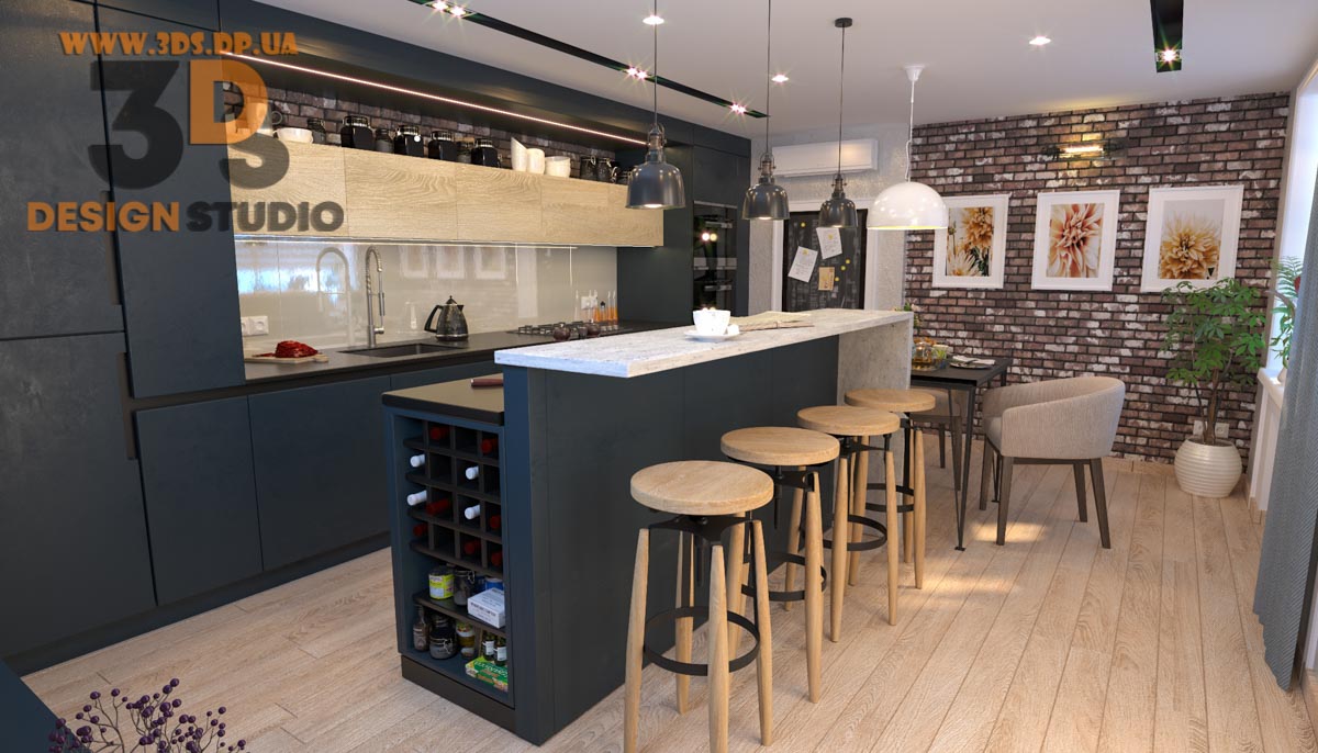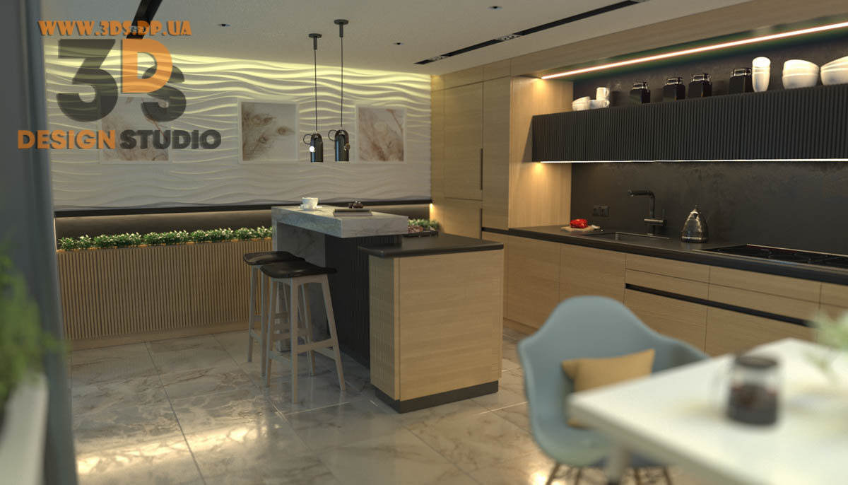 Студия дизайна интерьера 3ds предлагает услуги дизайна ➤➤ Дизайн кухонной мебели ➤➤ Интерьерые решения кухни студии
