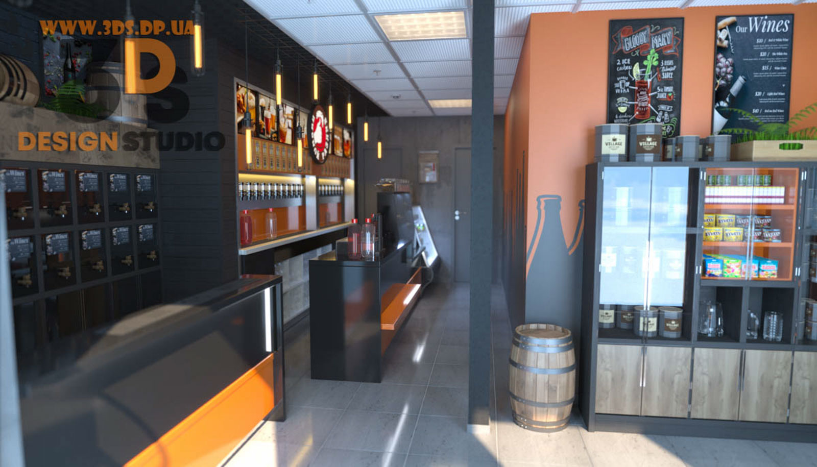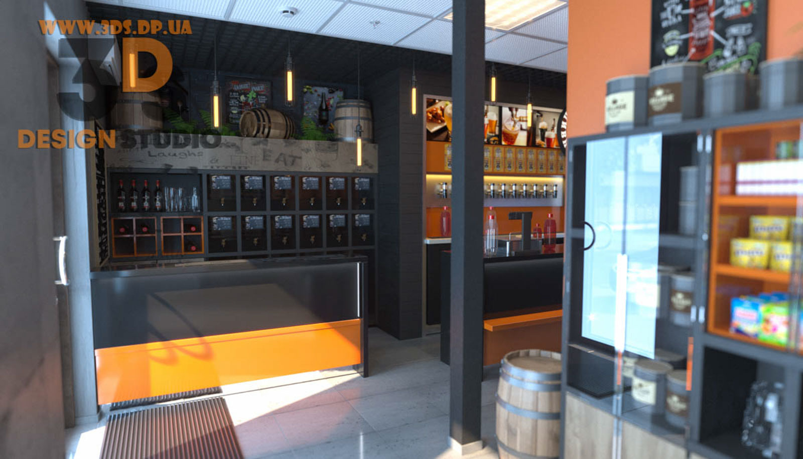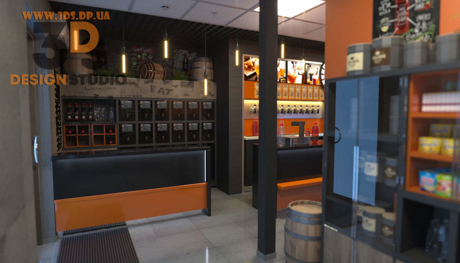 Пример дизайна магазина разливного пива ✏ Дизайн маленьких интерьеров в стиле лофт ✏ Заказать проект г. Днепр