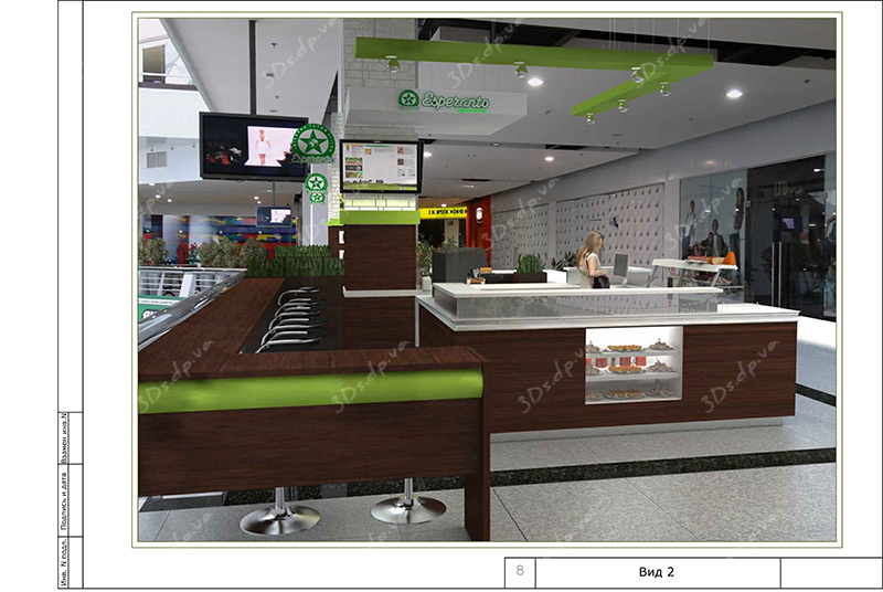 Дизайн проект интерьера кафе Esperanto в торговом центре Мост- Сити