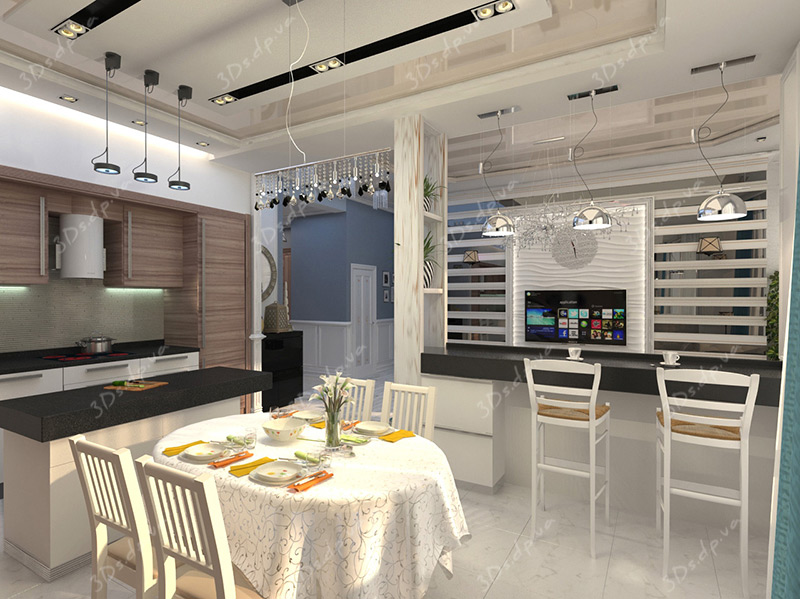 Дизайн интерьера кухни студии в современном стиле | Дизайн интерьеров от студии 3DS