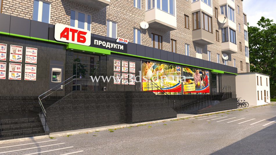 Экстерьер продуктового магазина АТБ в Днепр ➦ Наша компания занимается разработкой дизайна офисов 2-я очередь ➦ Интерьер офиса от компании 3ds ➦ Вся подробная информация находится у нас на