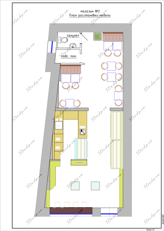 Дизайн проект растановки мебели интерьера кафе street coffee