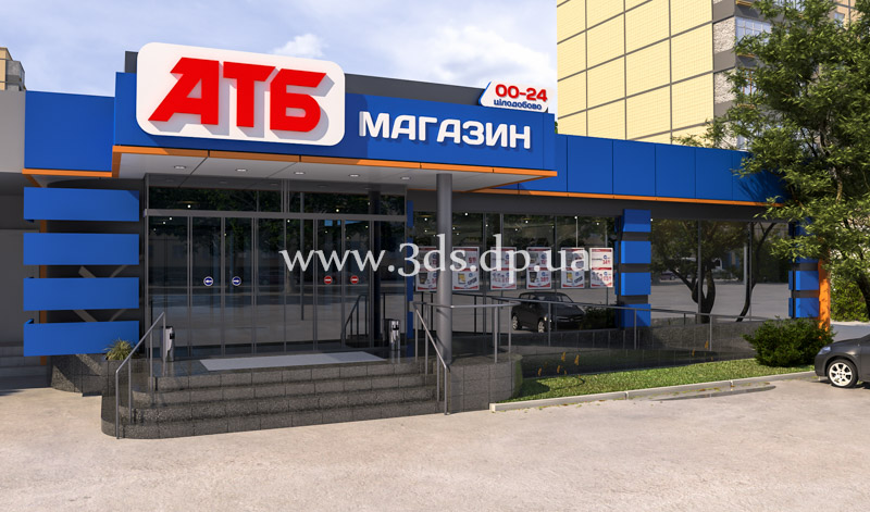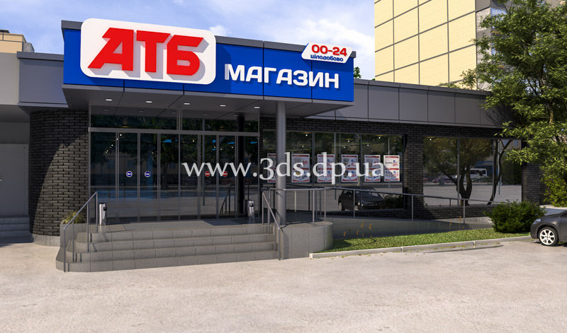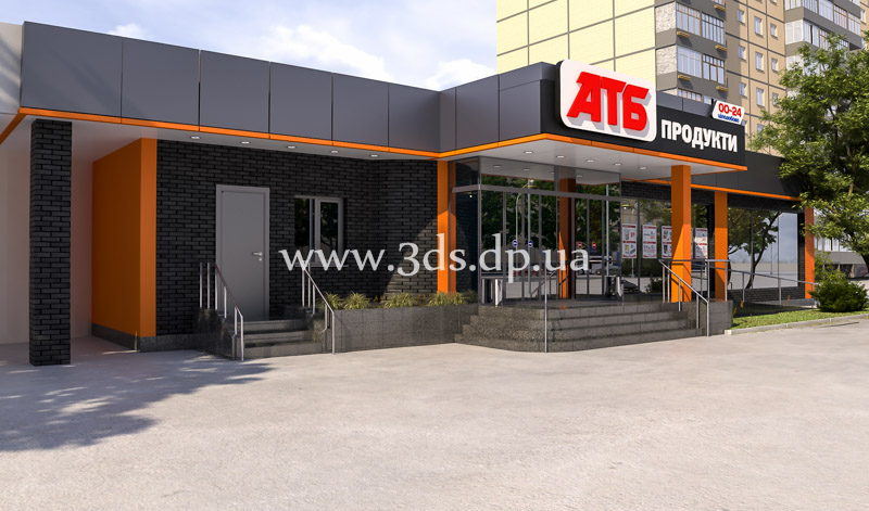 Экстерьер магазина АТБ ➦ Наша компания занимается разработкой дизайна офисов 2-я очередь ➦ Интерьер офиса от компании 3ds ➦ Вся подробная информация находится у нас на сайте 3ds.dp.ua ➦ Зво