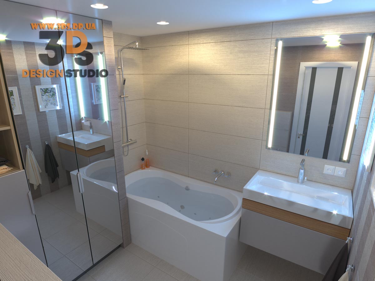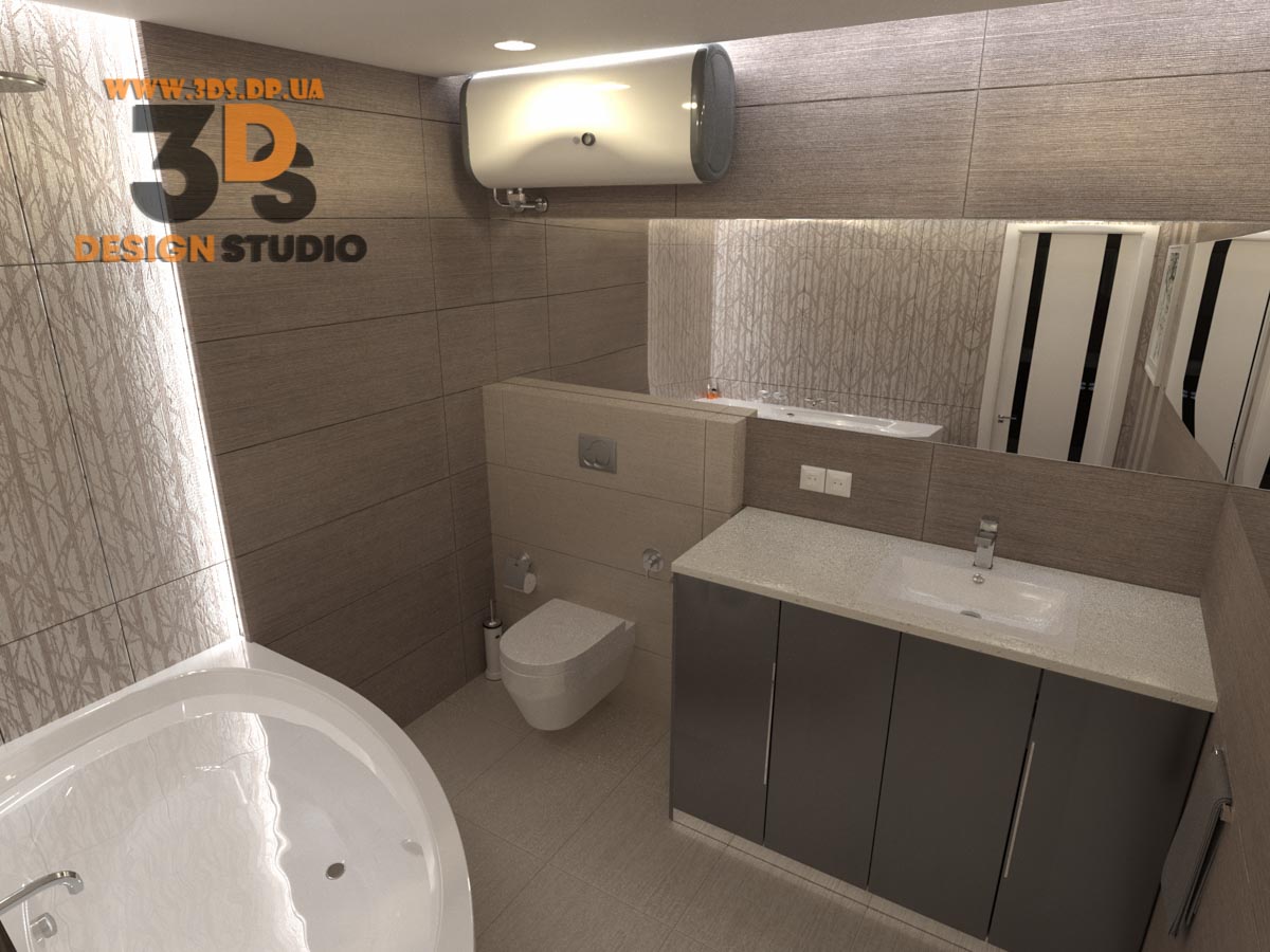 Интерьер ванной комнаты в 3х комнатной квартире Днепр