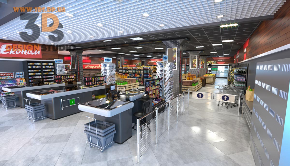 Интерьерные решения продкутового магазина