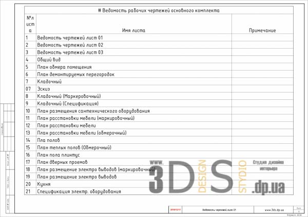 Рабочий комплект строительных чертежей дизайн проекта квартиры