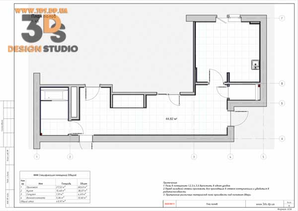 - План полов, спецификация материалов пола