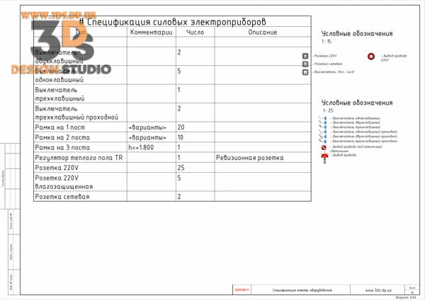 - Спецификация электрооборудования (розетки, выключатели, подрамники)