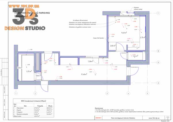 - План отметок потолка