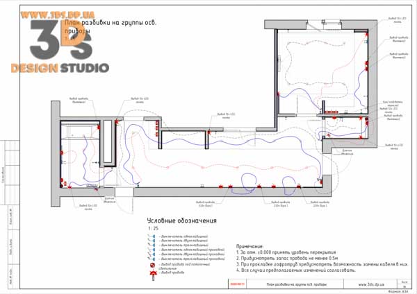 - План расстановки, привязки осветительных приборов