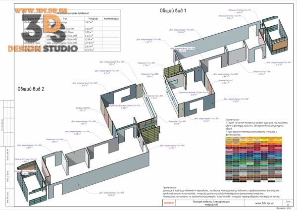 - План с указание видов отделки стен