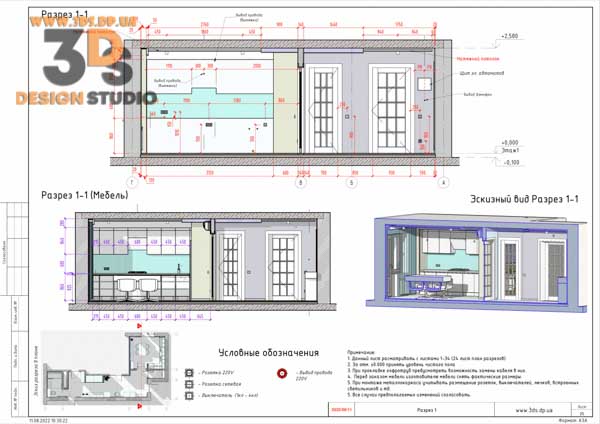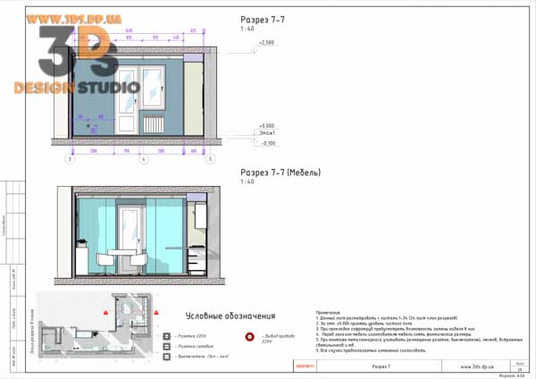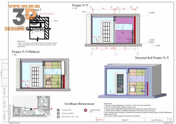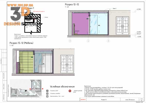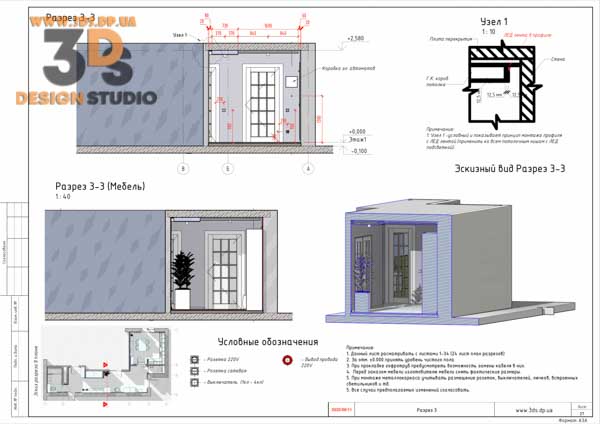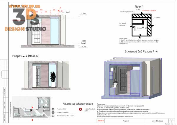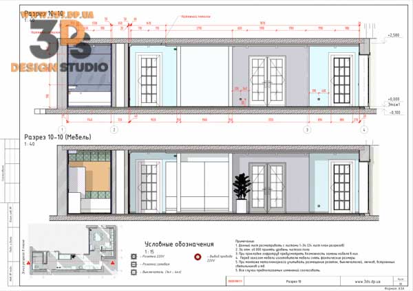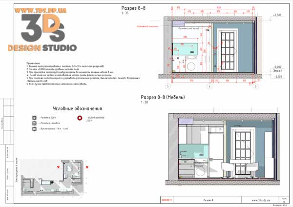 На разрезах показаны все привязки электровыводов, сантехники, отметки потолков и тд…