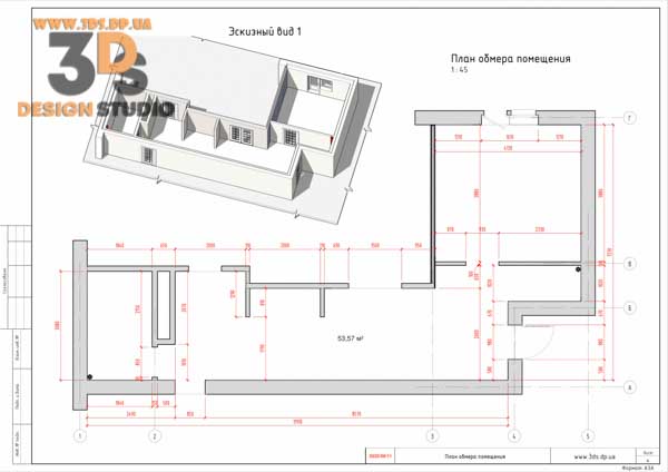- Выезд на объект, замер и фотофиксация разрабатываемого помещения.
