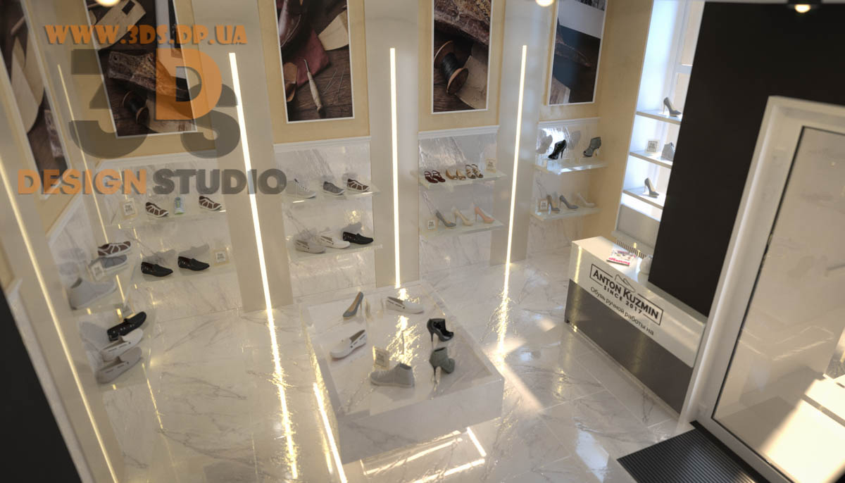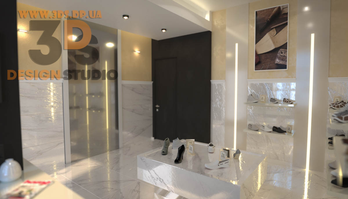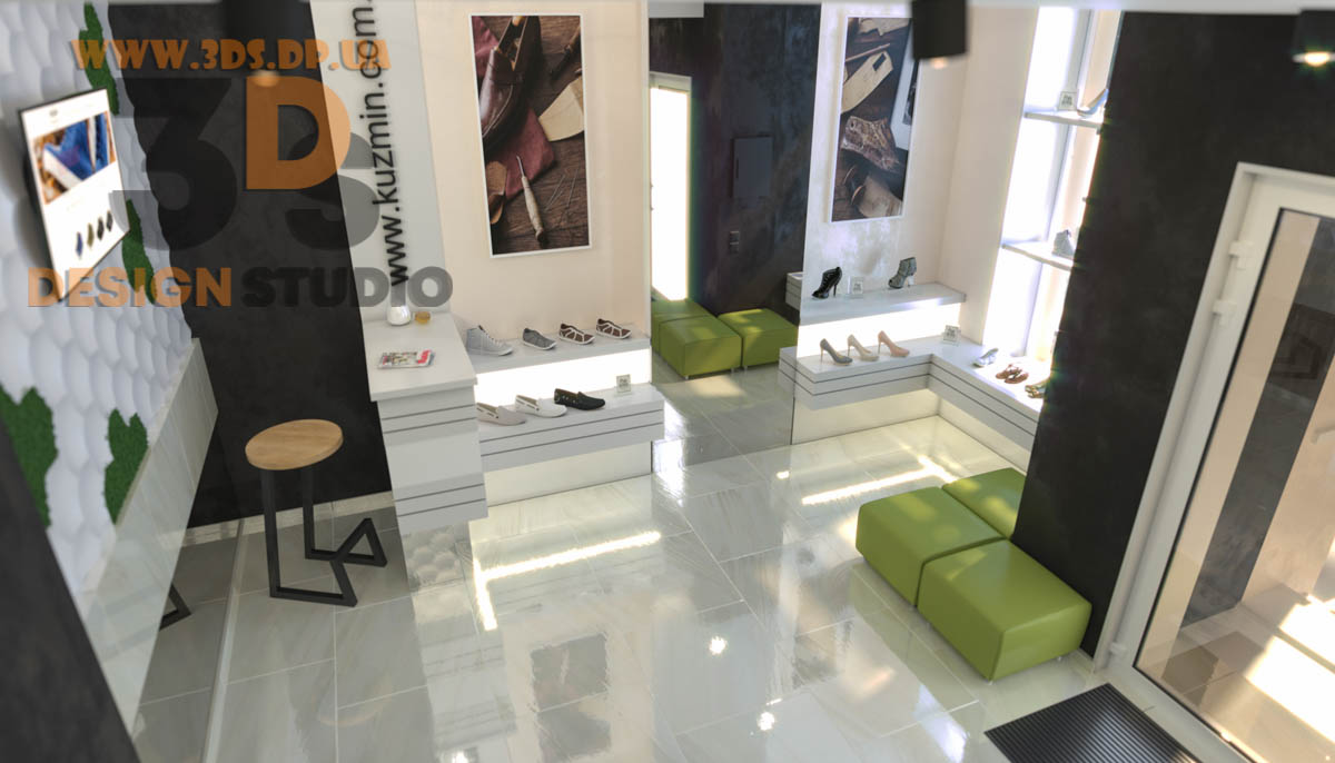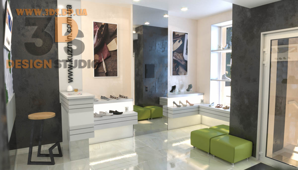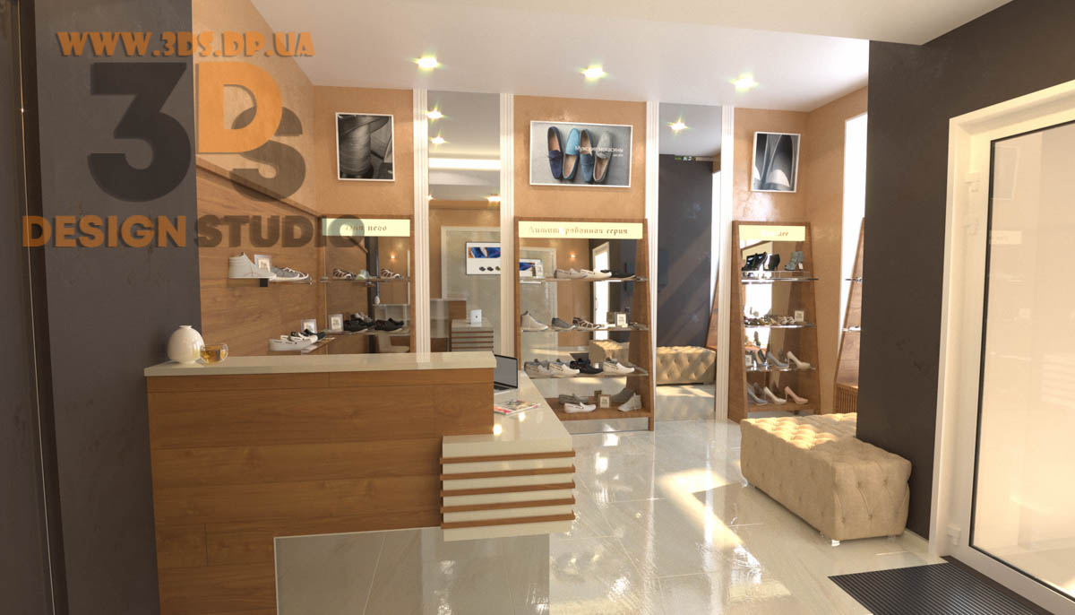 Дизайн интерьера в Днепре ➦ Интерьер бутика ➦ Оформление обувного бутика ➦ Дизайн проект от компании 3DS