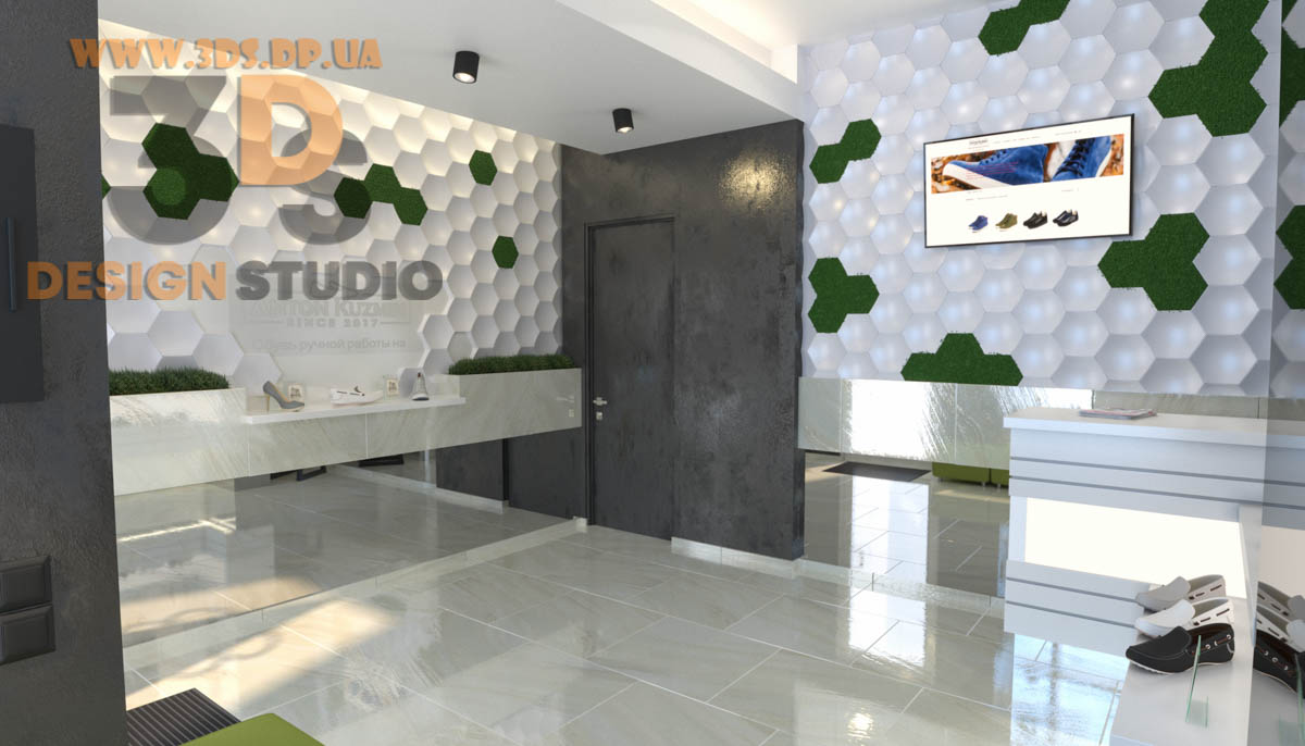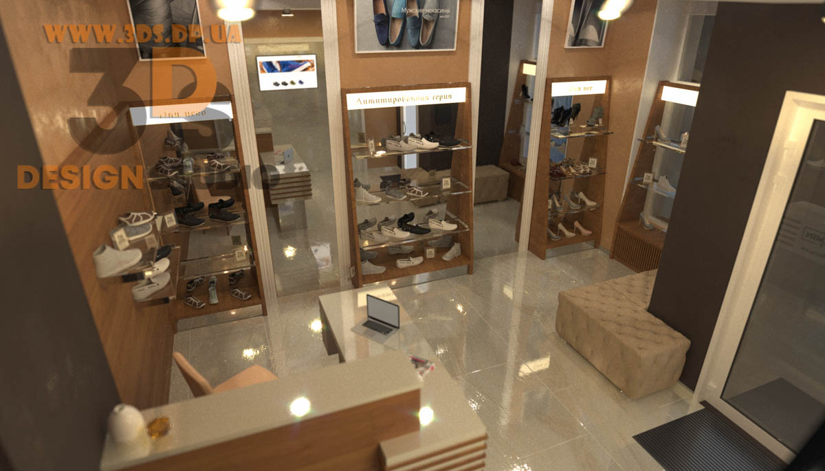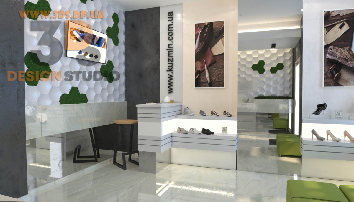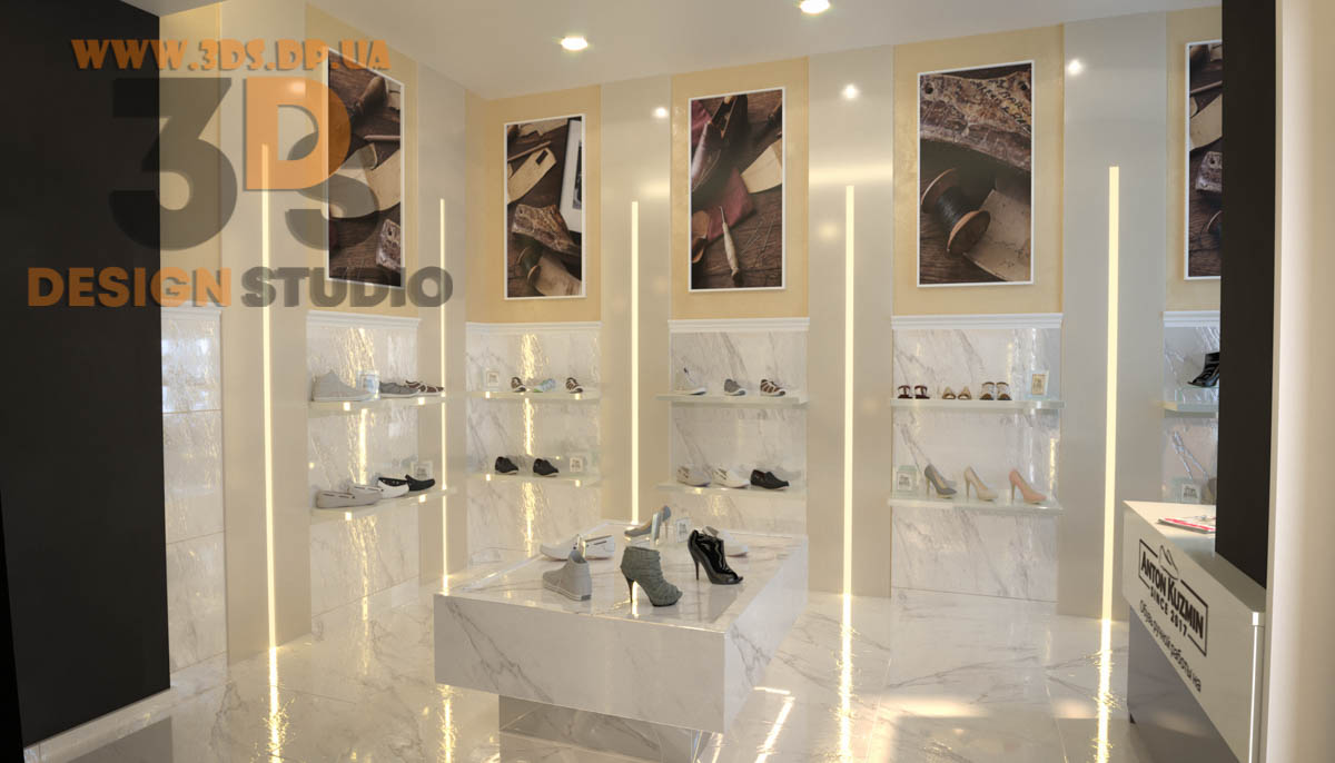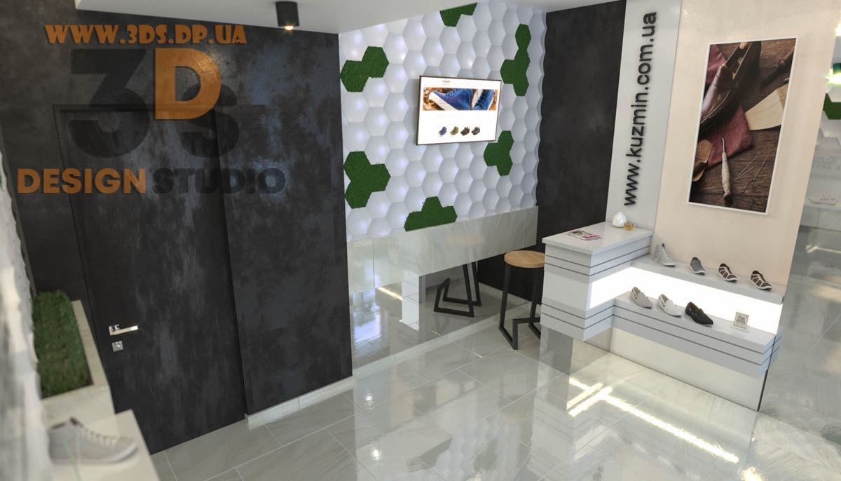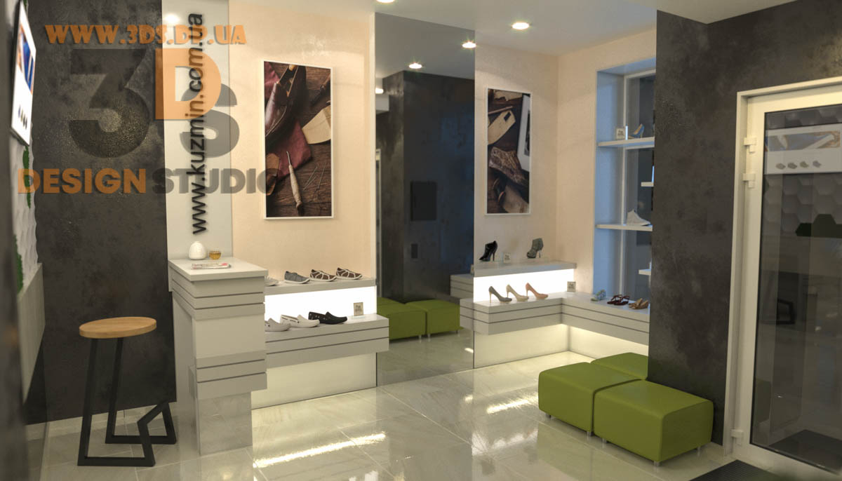 Дизайн интерьера в Днепре ➦ Интерьер бутика ➦ Оформление обувного бутика ➦ Дизайн проект от компании 3DS