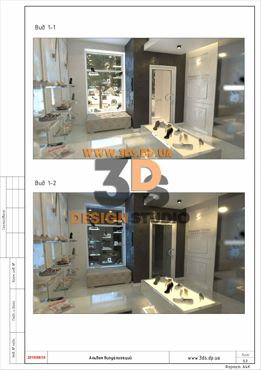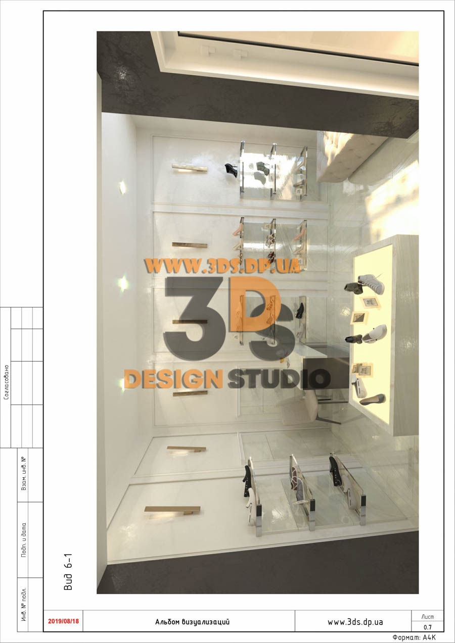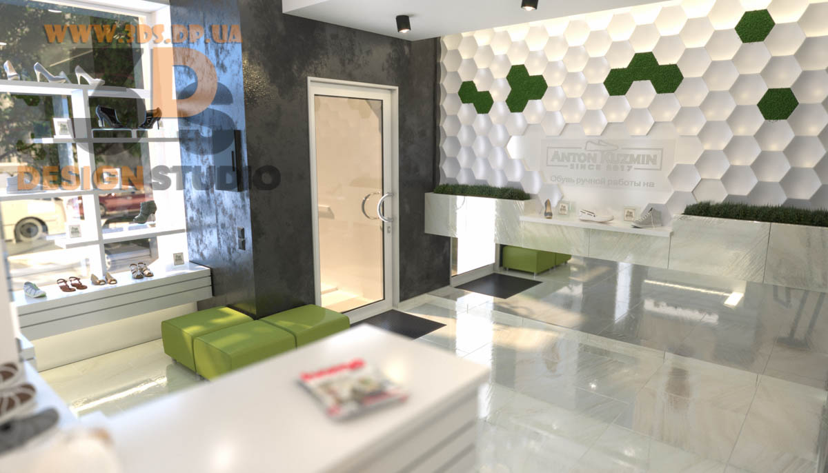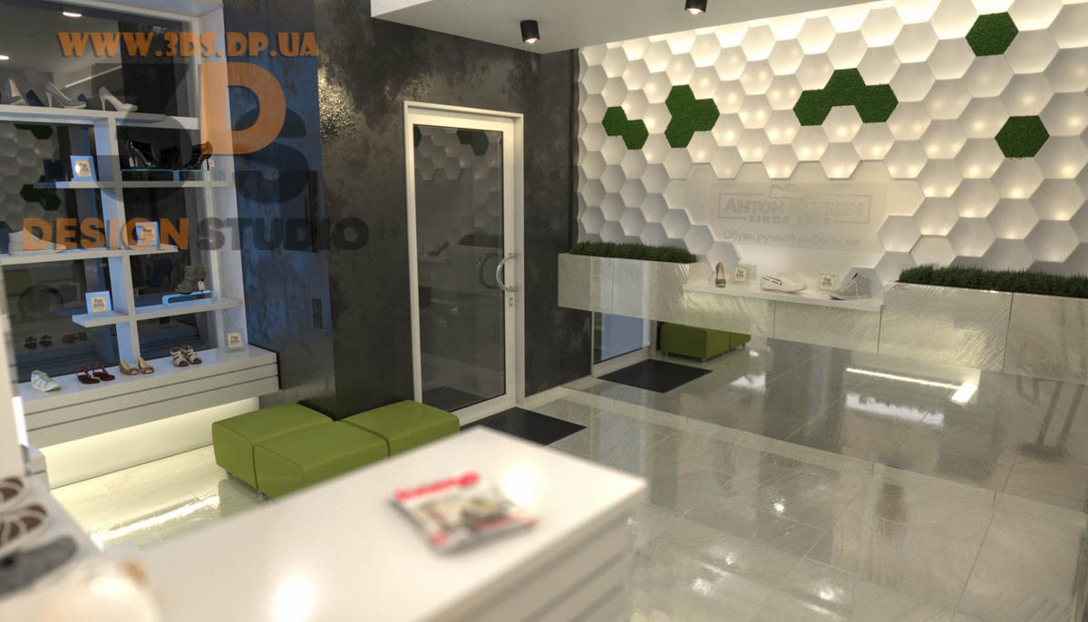 Дизайн интерьера в Днепре ➦ Интерьер бутика ➦ Оформление обувного бутика ➦ Дизайн проект от компании 3DS