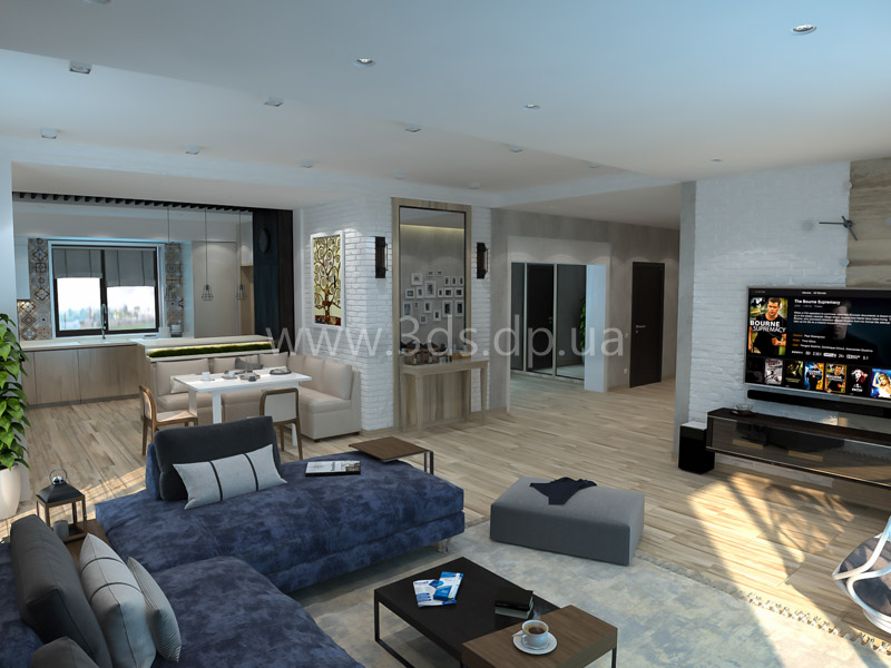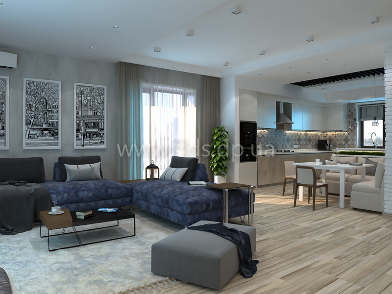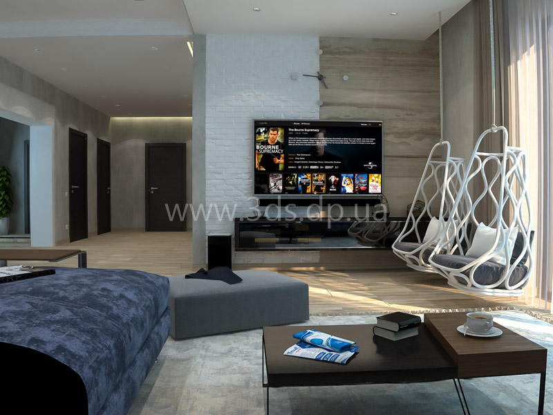 Дизайн интерьера загородного дома, гостиной студии г. Днепр